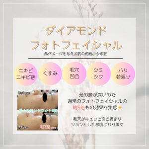 毛穴をお掃除した後、ダイアモンドフォトフェイシャルの光でお肌を修復し